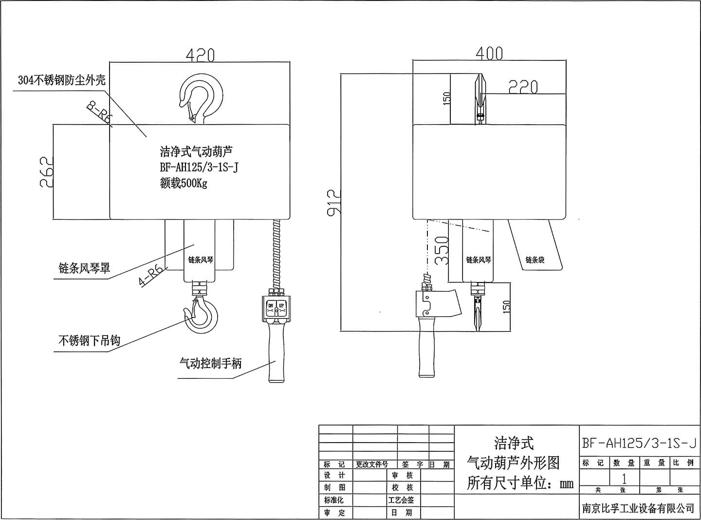 AH:airhoist 氣動(dòng)葫蘆首字母縮寫(xiě)