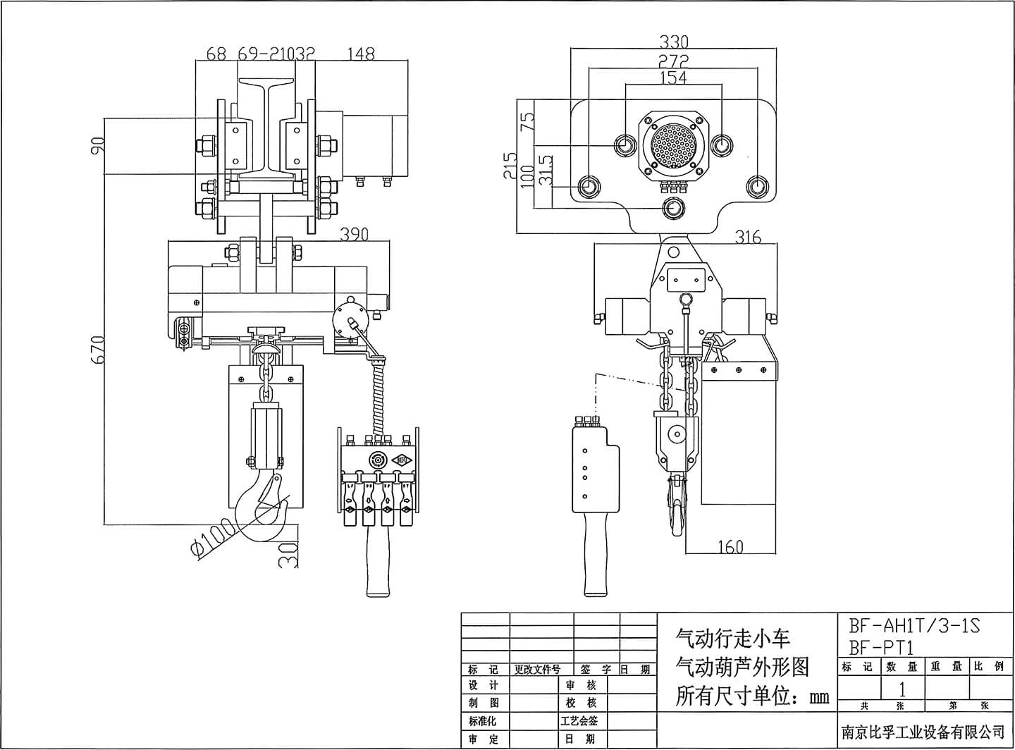 | 配套氣動葫蘆型號 | BF-AH1T/3-1S | |