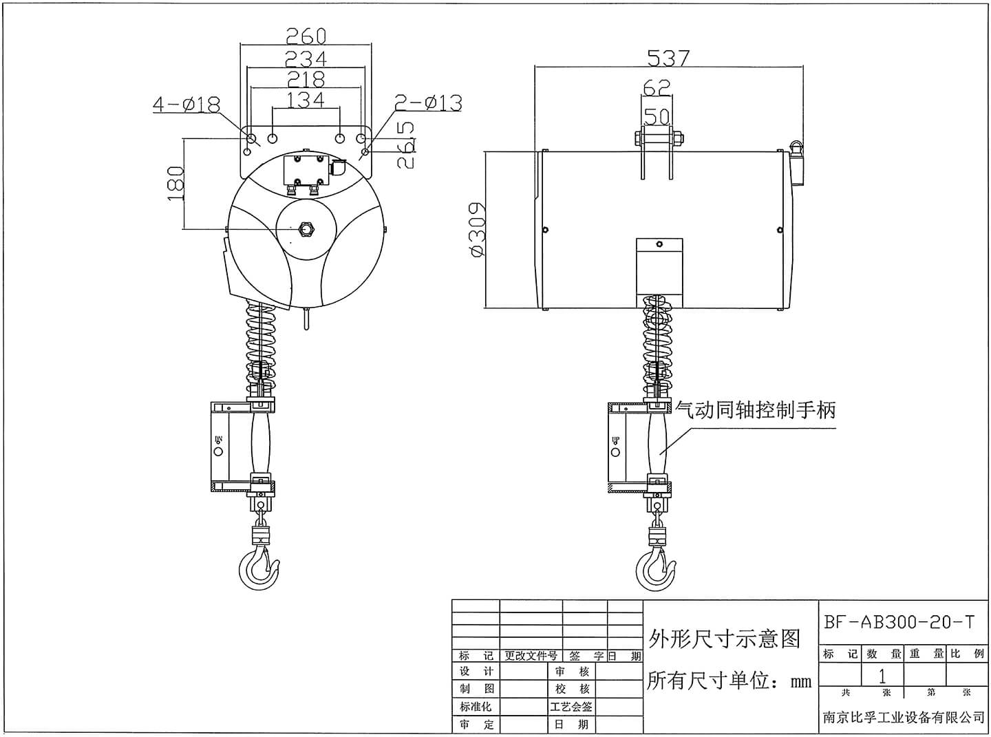 氣動平衡吊標準額定工作氣壓是0.7Mpa(100psi)。