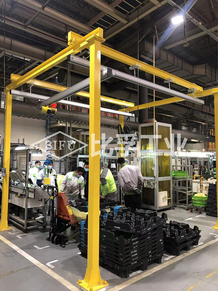 氣動(dòng)同軸控制款氣動(dòng)平衡吊配專用氣動(dòng)夾具配鋼結(jié)構(gòu)鋁合金軌道應(yīng)用案例。