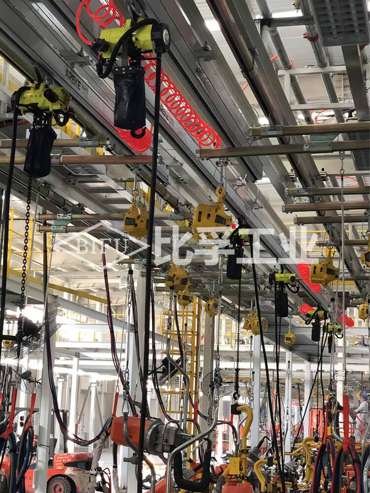 汽車主機廠氣動葫蘆配鋁合金軌道應用案例。