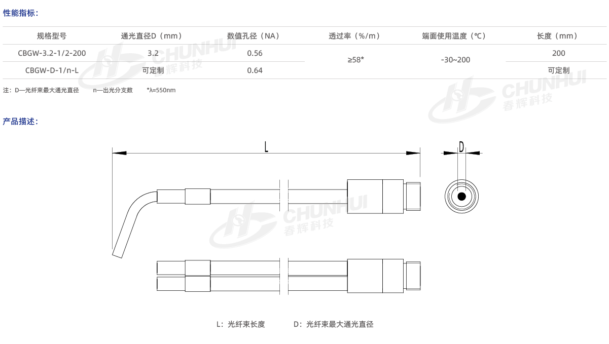 光譜傳輸范圍廣、傳光效率高、光輸出均勻。